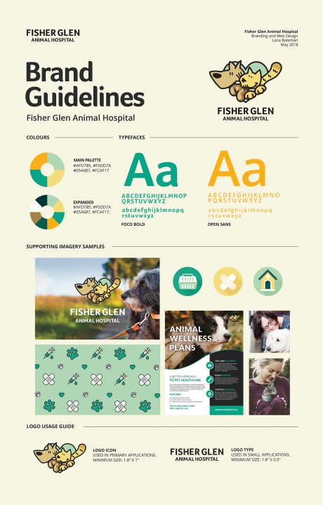 Branding and web design project for Fisher Glen Animal Hospital. This practice needed a brand to better capture the caring, friendly, and helpful spirit of their clinic, and a modern and eye-catching new web design to welcome clients.